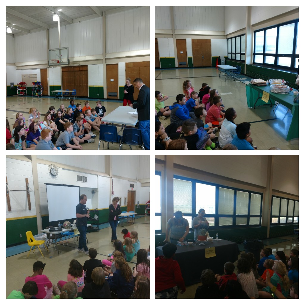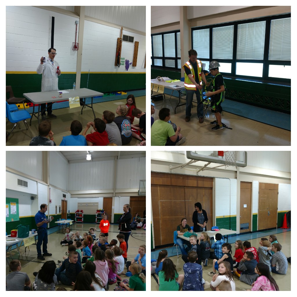 And in April, 3rd and 4th graders participated in a career fair to learn more about possible career tracks they could pursue. Each class rotated through four stations and learned about the different careers of parent volunteers. These careers included scientist, construction, realtor, aircraft mechanic, grain merchant, pharmacist, registar, chef, app software developer, human resources, athletic trainer, veterinarian, product designer, and bakery owner.