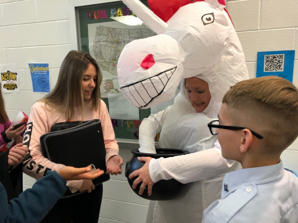 Contestants from The Price is Right mingled with unicorns and vampires in the hallways of Little Miami High School during Halloween this year. Check out the photos!