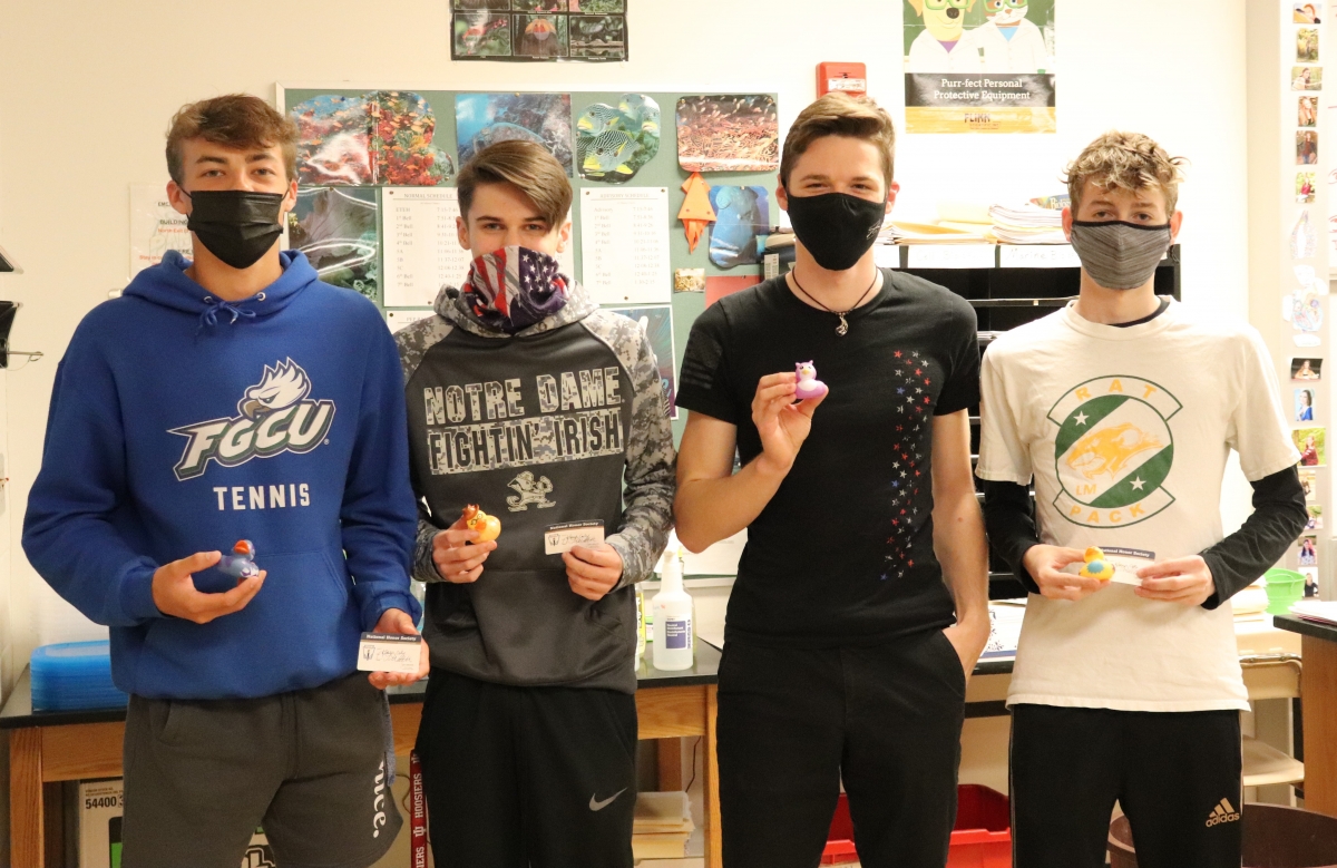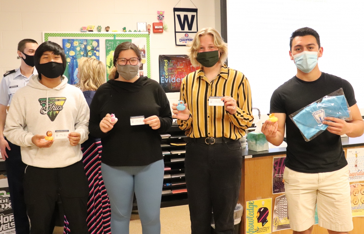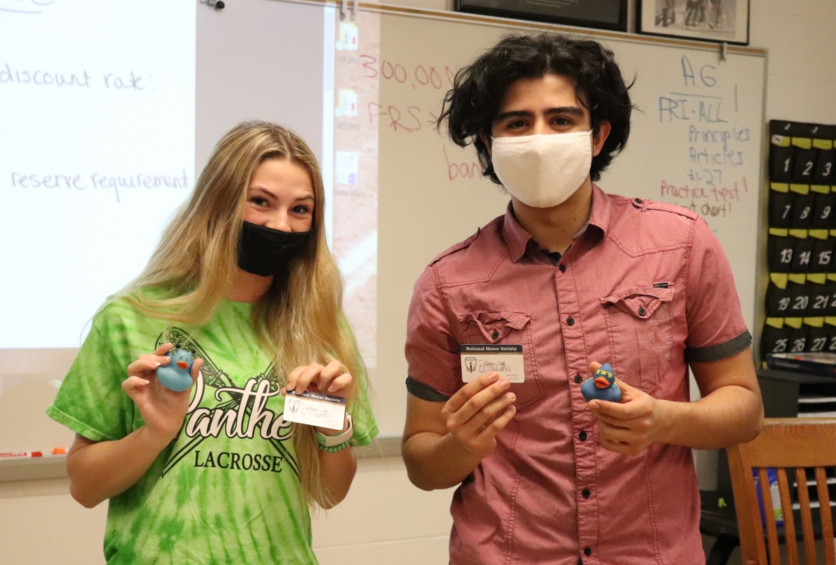 Another week, another batch of well-deserving students being inducted into National Honor Society! This morning, current NHS members welcomed Junior class new members into the group with a "tapping" ceremony, presentation of membership cards, and a rubber duck for their “in-duck-tion.” Congratulations to all new members!
