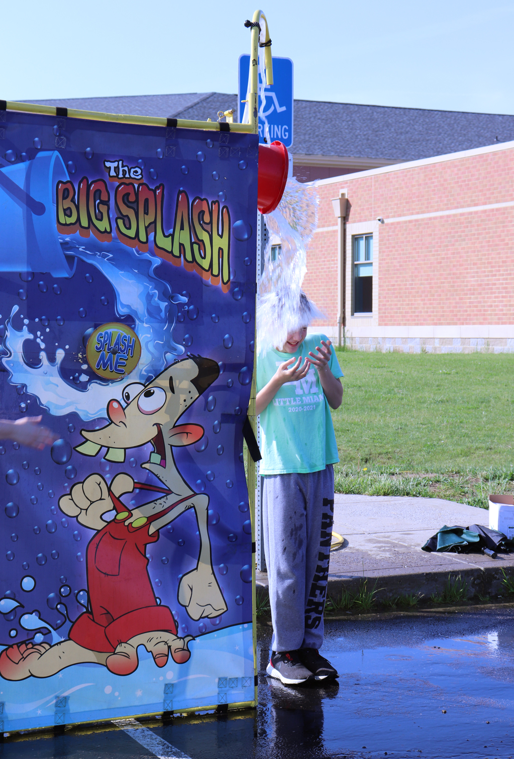 It took mad skills to kick a fuzzy soccer ball and get it to stick to the two-story tall dart board. And instead of dropping into a tank of water, the reverse dunking booth drops the water on you! Students also launched (and attempted to catch!) water balloons, tossed rings at a target, and played basketball as well.